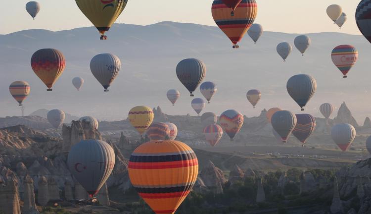 Kılıçlar vadisinde Sıcak Hava Balonlarının ateşlenmesini ve havalanmasını izliyoruz, hemen